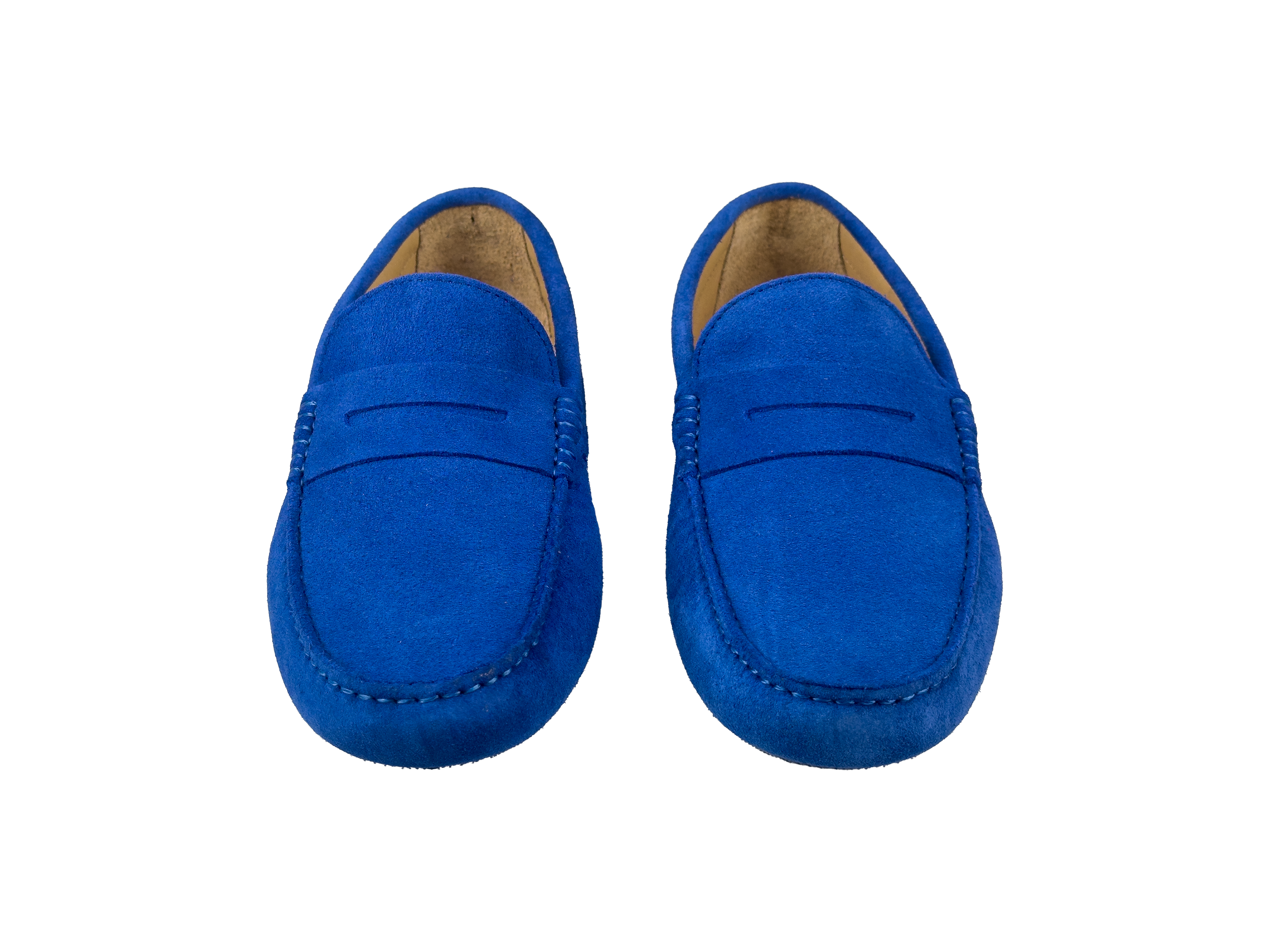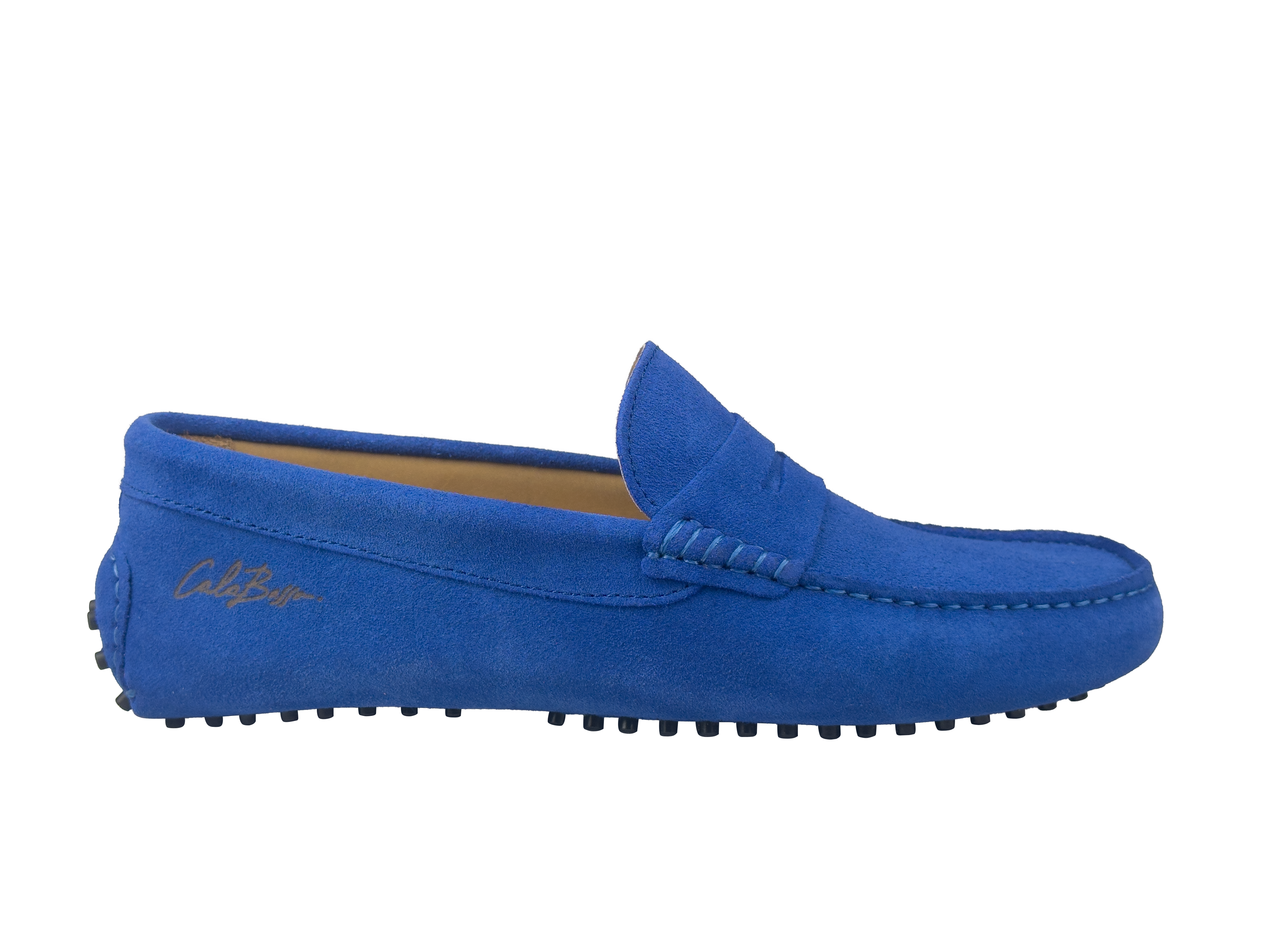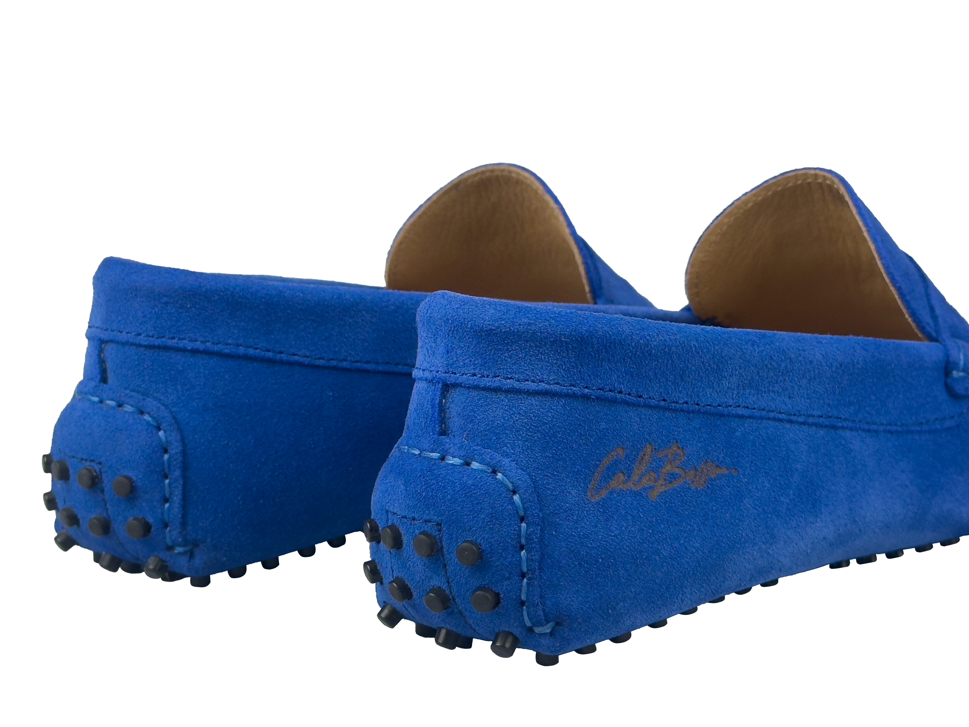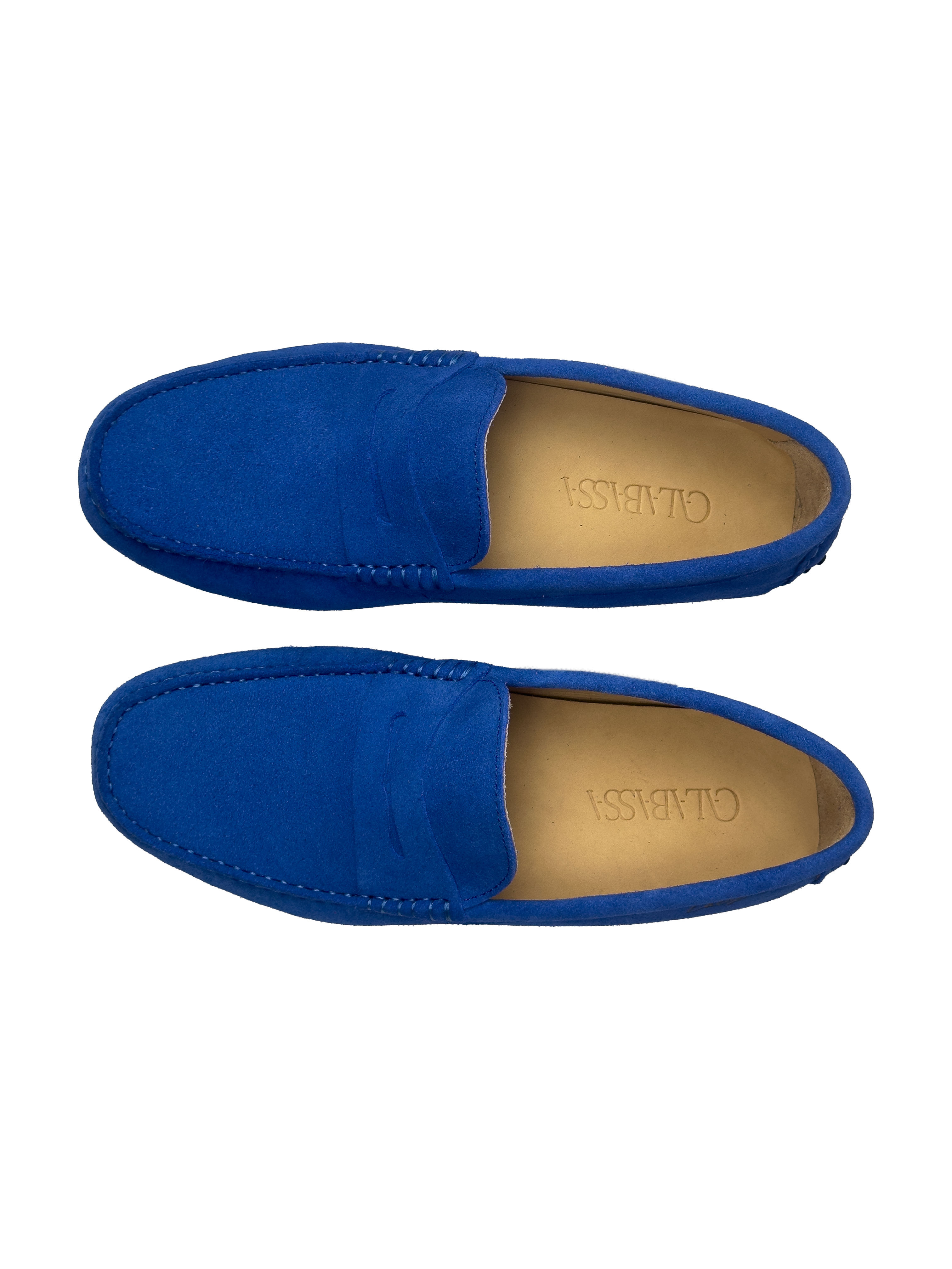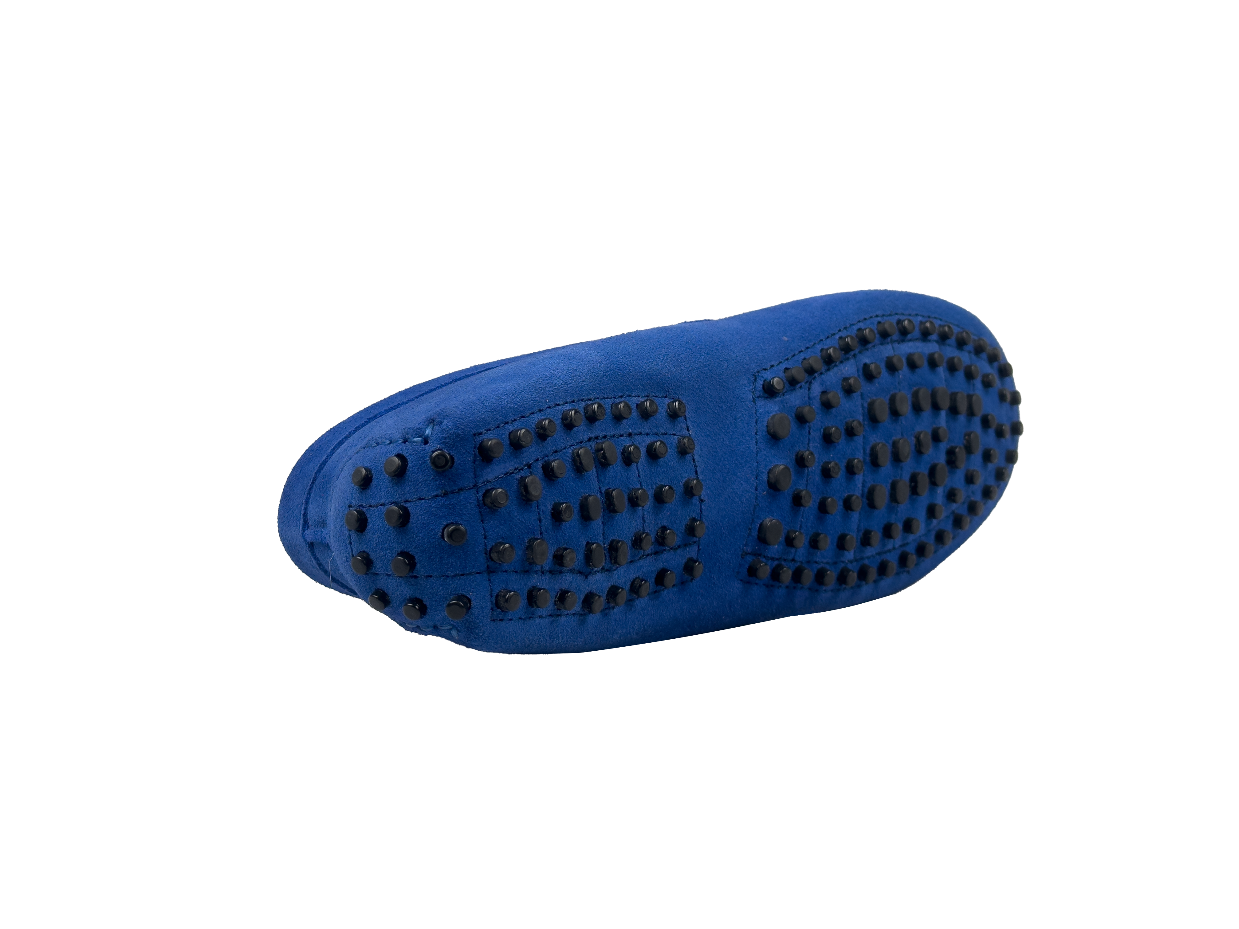 Premium Suede leather Ox lining Padded insole Electric Blue Sole with small rubber studs Product made in Spain |