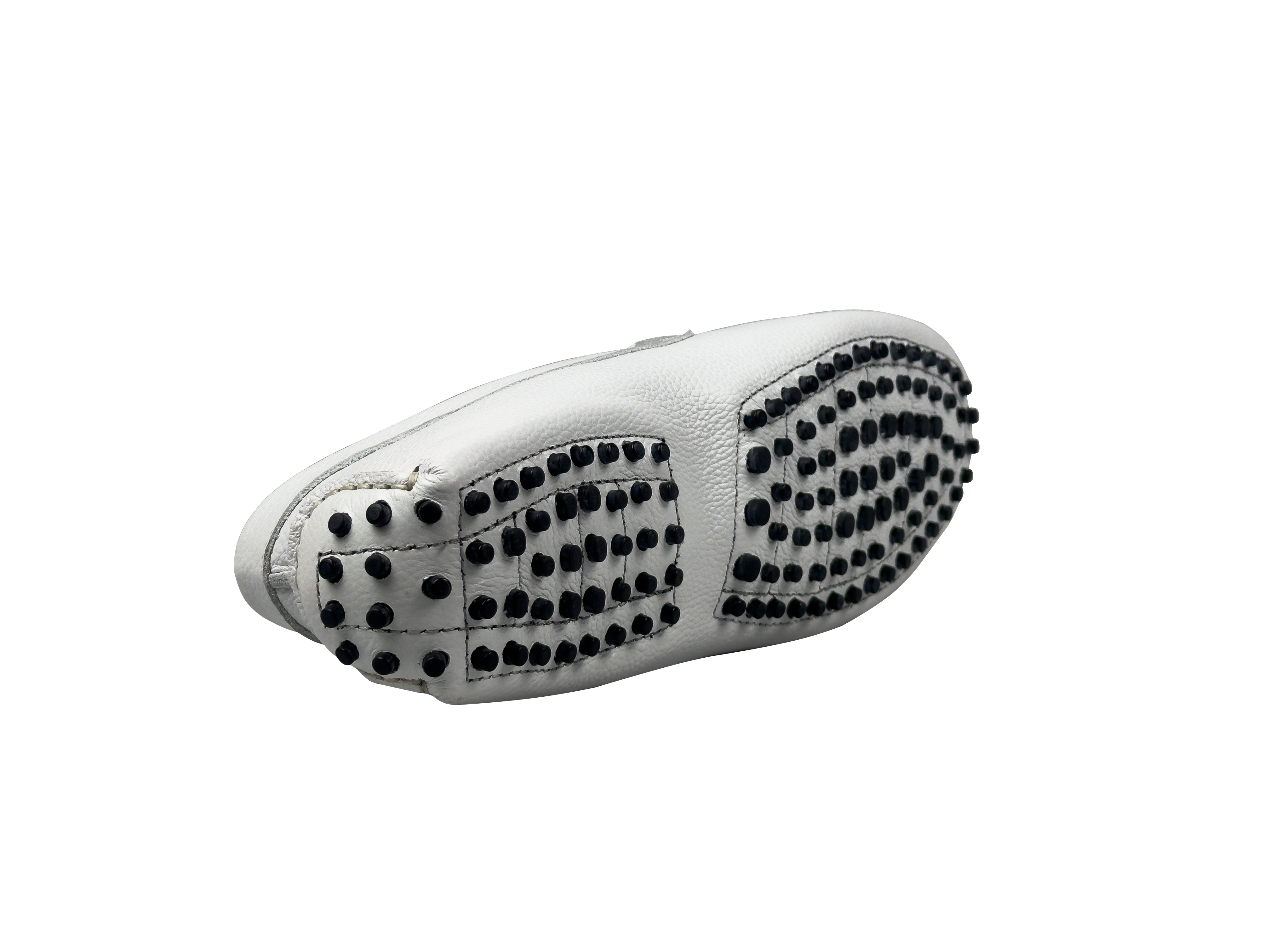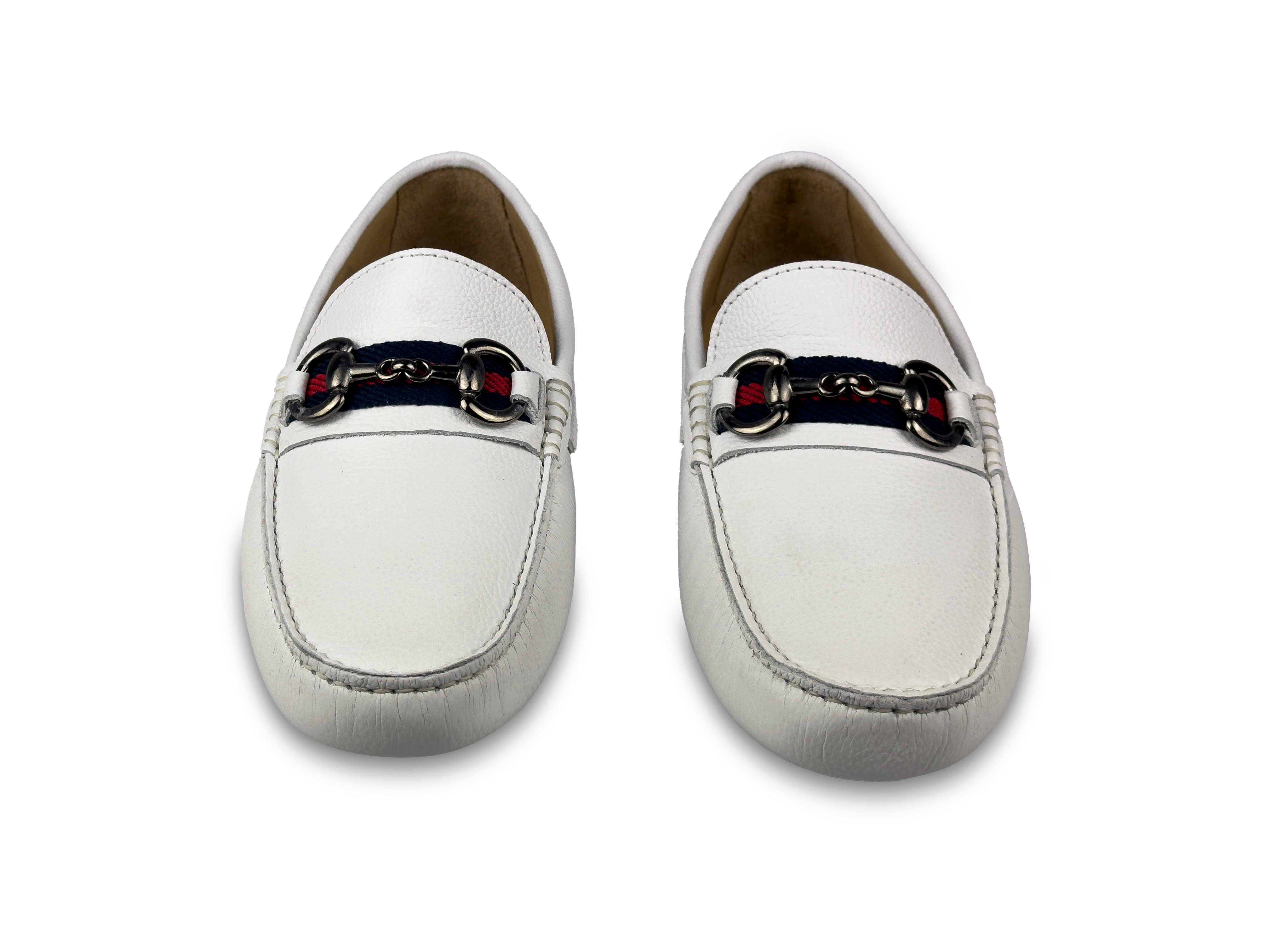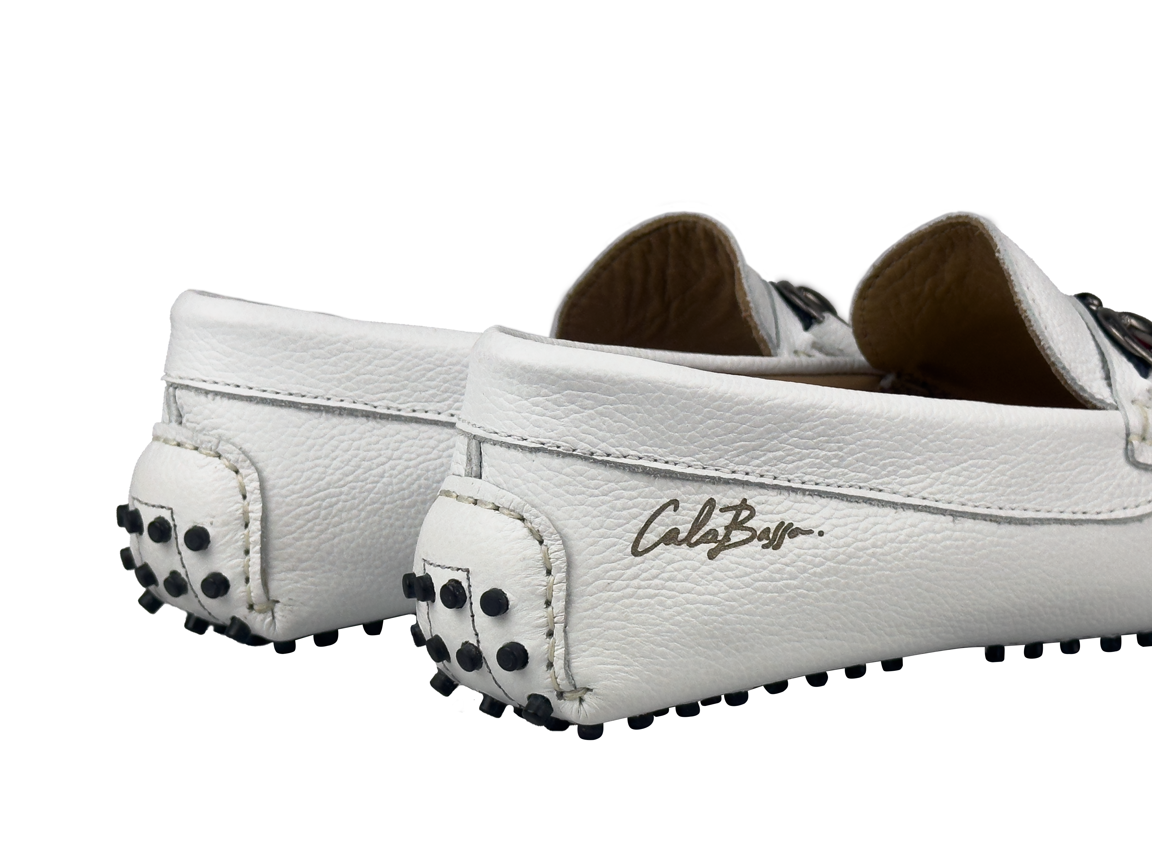 Inspired by the vibrant sunlight of Ibiza, the Eivissa White moccasin shines with its sleek, bright design.