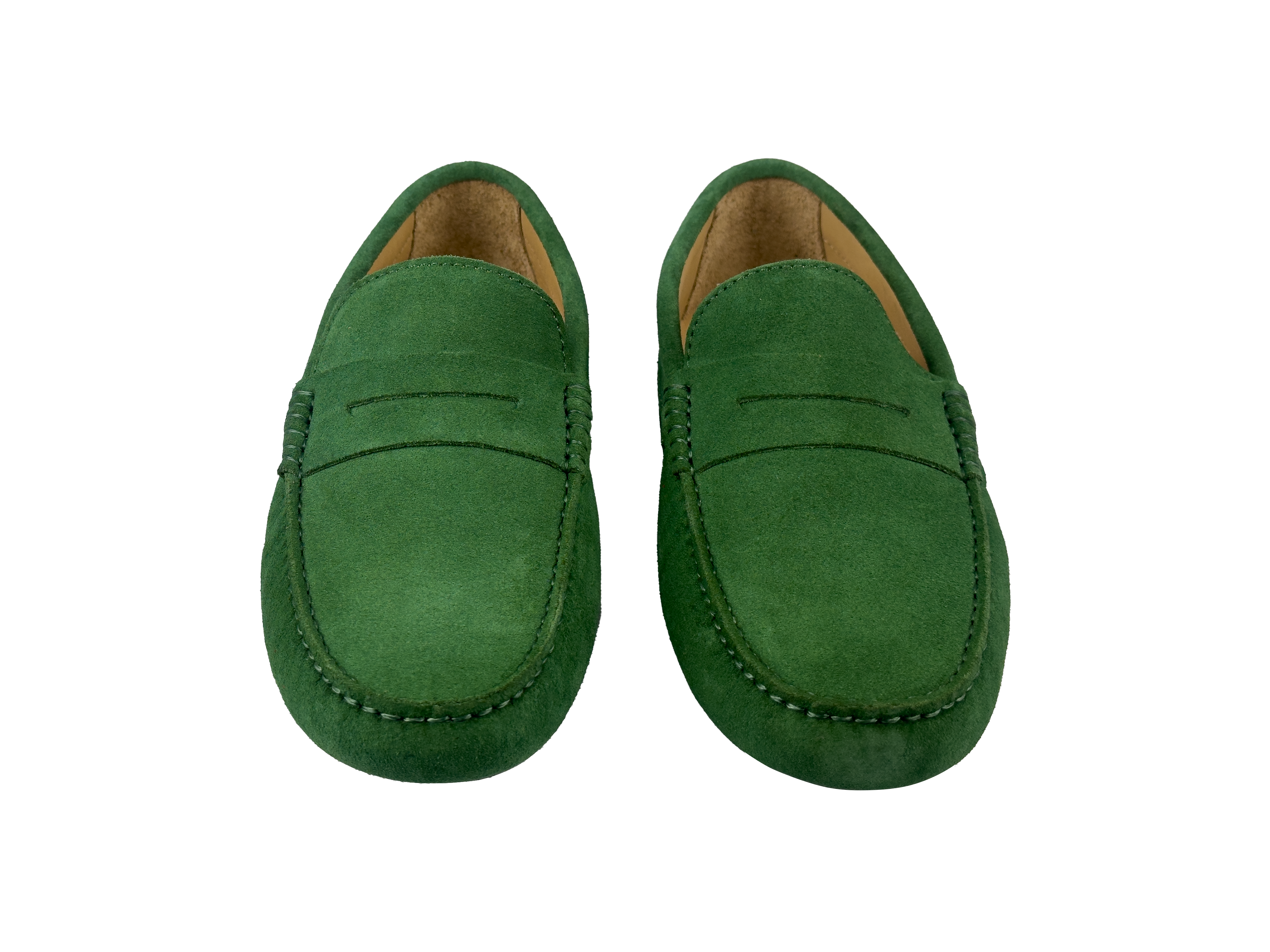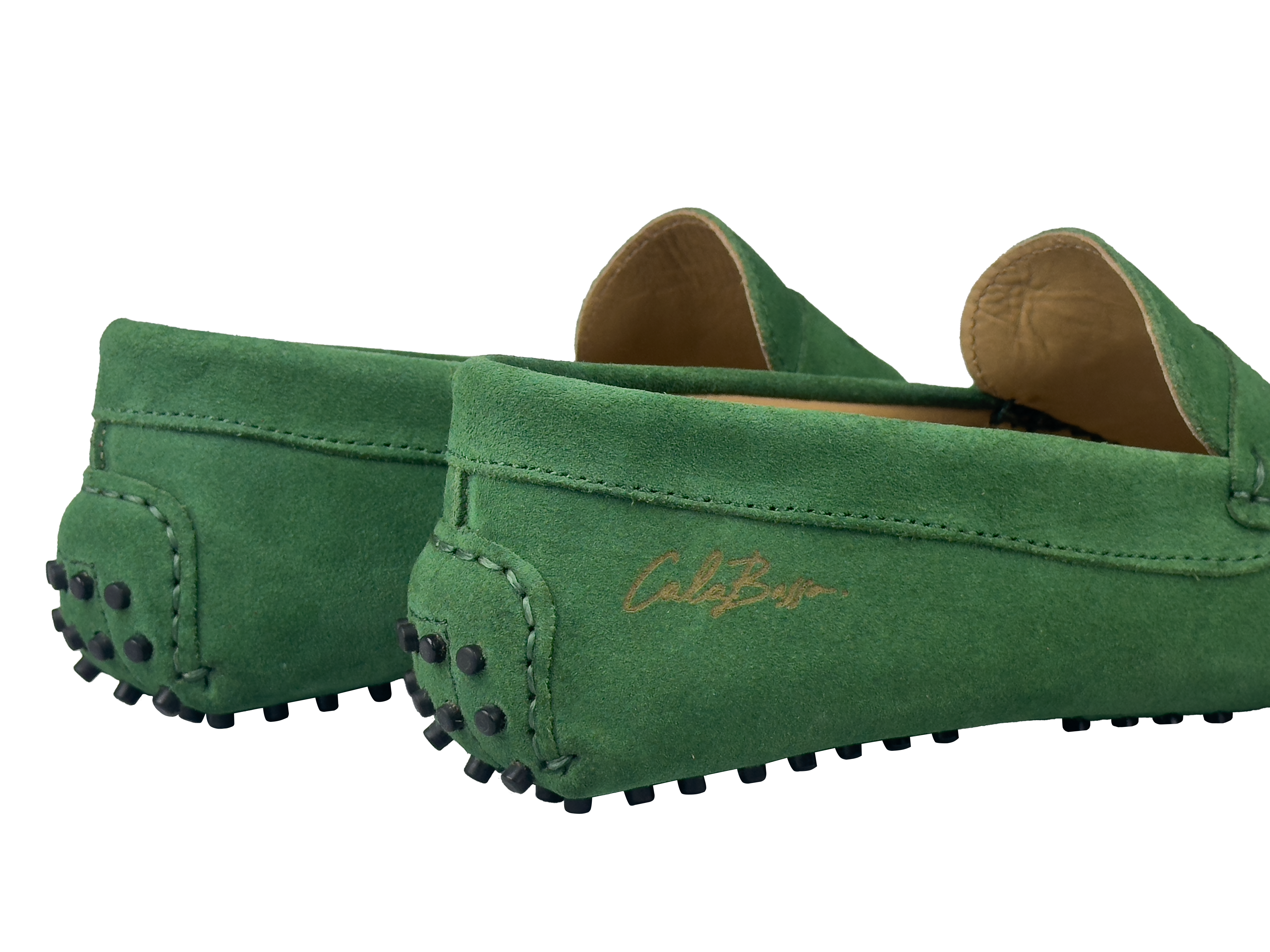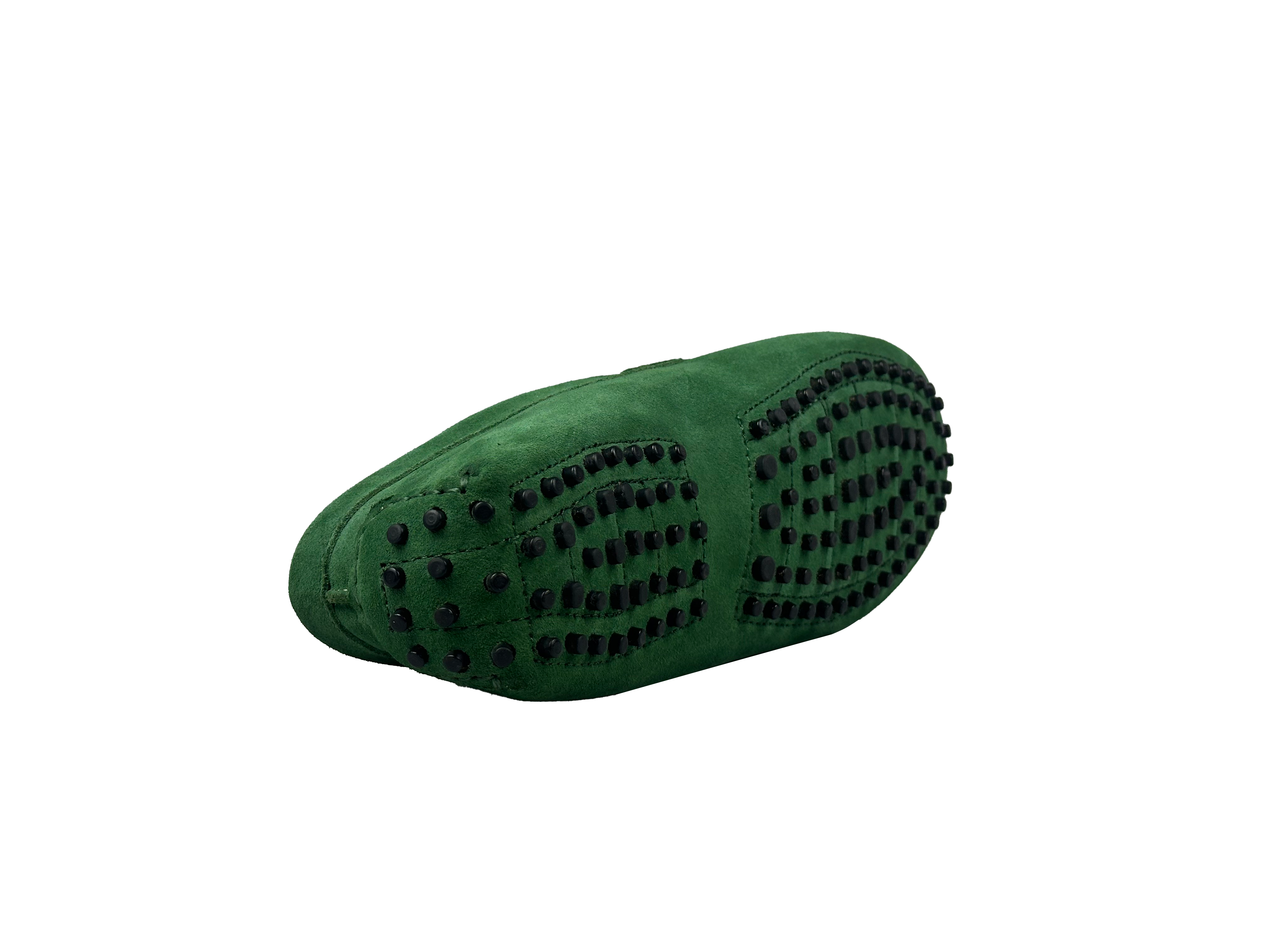 Premium Suede leather Ox lining Padded insole Dark Green Sole with small rubber studs Product made in Spain |