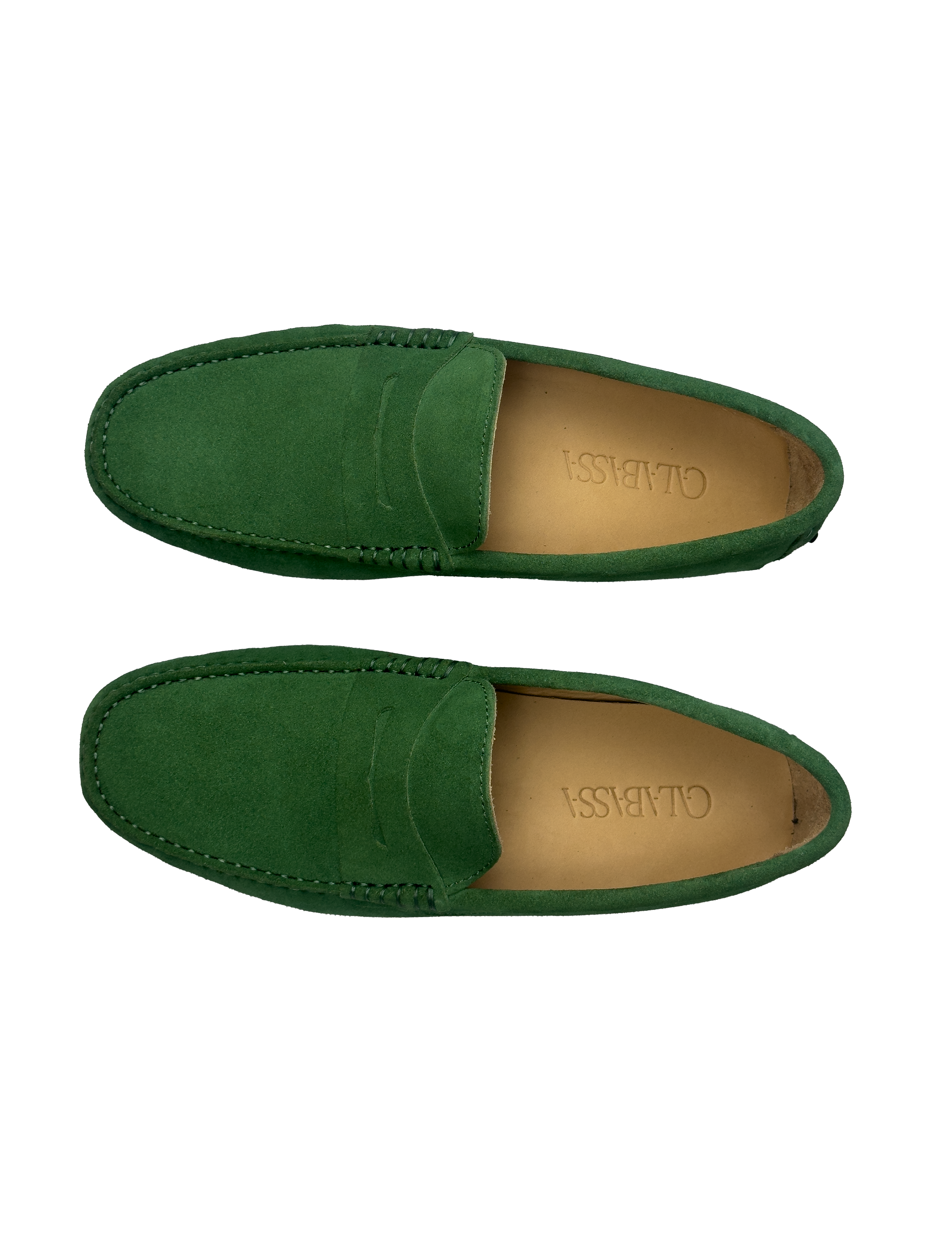 The "Verde Es Vedrá" moccasin driver shoe draws inspiration from the majestic Es Vedrá of Ibiza, reflecting its natural allure.